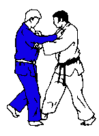 | Tori se décale en avançant son pied gauche a l'extérieur du pied droit de Uke et y prend appui.