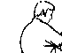 tirant en arc de cercle vers le bas avec son bras gauche.