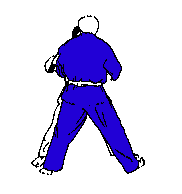 Il pivote pour tourner le dos a Uke et plie ses